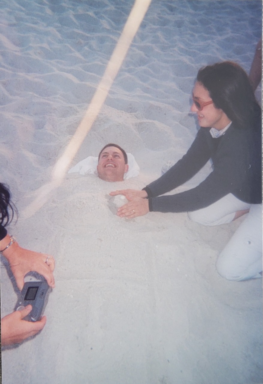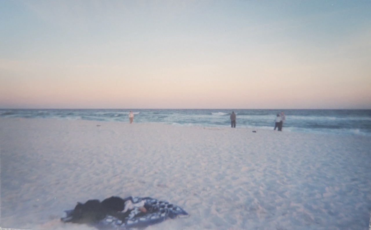 I’ve been hanging out with Megan non-stop. She stayed in my bed, and I slept restlessly on the edge. I crashed on Whitney’s bed till she opened the door. I got up so fast. We went to the beach with Tabor, Moore, Berry, Goomas, and Luke Peoples. We saw Holloway, Speight, and Cox and stayed a while with Field, Ryder, and Air Force [at least one is a nickname]. Megan’s family visited for a while, and some people got in the 50° water. I had enough problems with all the sand in my boot.