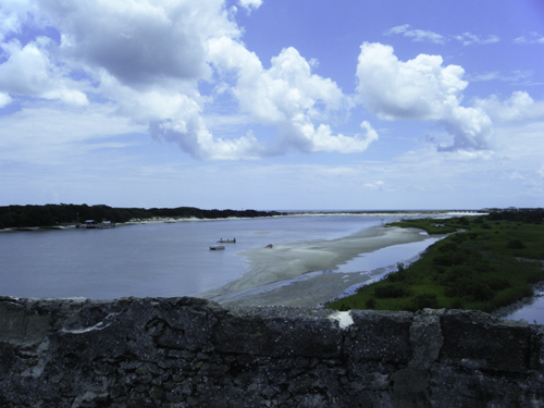 This was once the fort used to protect the rear entrance to St. Augustine; only firing once upon an enemy. Built in 1740 and commemorated in 1924, matanzas in Spanish means ‘slaughters.’ We arrived by a guided-boat tour and there was a guy on “duty” to teach us some of the fascinating history. We were able to climb through a small hole, about a square foot, using a vertical ladder that leads from the Officers Quarters, bed and desk, to the Observation Deck. Once up here, we were able to see two original cannon and other replicas used for cannon firing demonstrations.