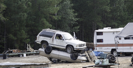We passed a house with dead animal bone decorations, another with cows painted on the side, and happened to notice these cars procreating in the yard. Lake City is about 75 miles west from our house. There are plenty of restaurant choices upon our arrival but we are not yet hungry enough to eat. Only a 30-foot bull and a tattooed biker caught our attention before we left. I’ve heard that sometimes the journey is more interesting than the destination; in this case that theory is correct.