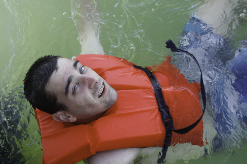 Days on the boat are filled with laughter, sun burns, Bud Light Limes, and junk food. So far, the guys have let more fish go than they have caught. I think it started out as a joke, but the life-vests on board have become regular swimwear. I will let the guys in first so I can get some pictures. I start out with an orange vest and it hurts my chin so Caleb trades me for the black one that rises above my head – photo opportunity. Apple waits for Caleb to get back to the boat before launching his attack. Luckily I expected him or I would have swallowed lots of seawater.
