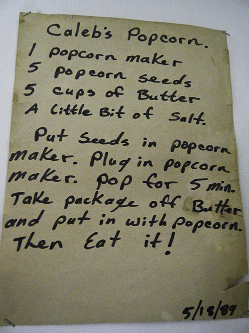 During nap time one day when Caleb couldn’t sleep his teacher let him take apart an old boom box that didn’t work; he had a screwdriver and everything. He took it apart and put it back together and it worked; his first time fixing anything. From here, his love for the mechanical arts would continue to grow. At the Parent-Teacher conference, or the “parents look at what your kid colored” meeting, the kids made peanut butter snacks for the parents and Caleb hid behind his mom while she was trying to be introduced to others.