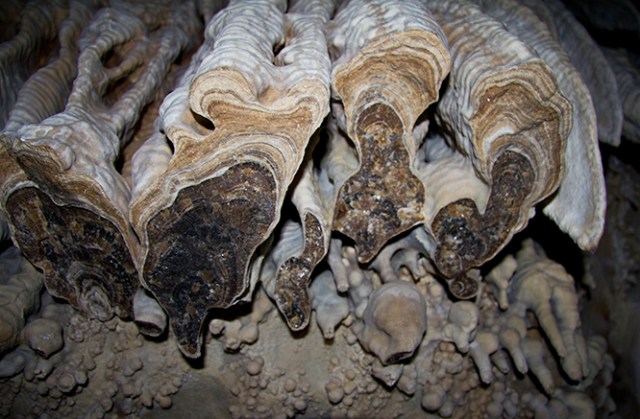 They couldn’t have been further from the truth. We got to see a developing stalactite. In 100 years it was maybe an inch long and not more than a quarter-inch in width. There is an extensive amount of soda straw stalactites and an even more impressive amount of cave shields – over 300. This cave is still growing and has developed many assorted layers. We are able to see eras of evolution as we walk through time in mere minutes. On the ceiling are names and dates of people who were exploring this cave by candle light in 1892, just four years before the first electric lamp was invented.