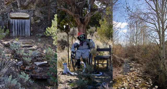 Last night, as the fire started to dwindle, the creatures of the dark began to stir. We would hear them creeping around the tent until we fell asleep. We wake early enough to watch the sun come over the mountains. We pack up the car and go for a walk around the water and watching how cute the dogs are waddling in their coats that Caleb made them. Continuing east on Hwy 50 we will see an old railroad tunnel, a cowboy mural, and a windmill (wind turbine) farm – not the old wooden rickety ones romanticized in the movies, but the large steel or aluminum ones with three blades 147 feet in length.