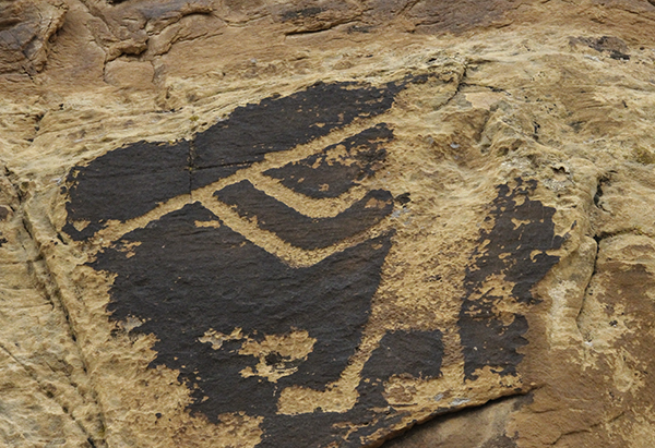 We explore the Sound of Silence Trail and then drive around the Green River campsite where it looks like the mountains have fallen over and are slowly sinking into the water – I’m sure that’s how a scientist could describe it in layman’s terms. Down near the river we get to see a water snake and a two-toned lizard. We will drive through a private ranch before reentering the park to see rocks covered in petroglyphs – new shapes we haven’t seen before and some in large sizes.