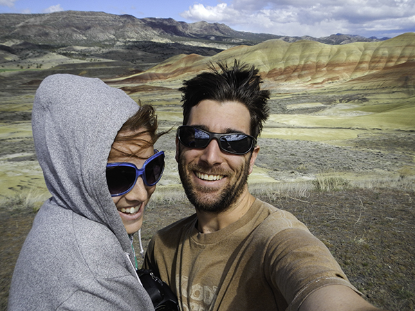 It’s more than breezy outside, but that doesn’t keep us from learning more about the forest that lived here 30 million years ago that has been replaced with near-desert today and the adaptations that plants and animals had to make to survive. We read about the oxidized iron, and a mix of oxidized magnesium, metamorphic claystone, and the black marks in the rock that are rich in manganese. Once in Prineville, I notice that we have 11,620 miles on the car. We bought it in mid-February with 49,280 yards on it and we are 1,593 kilometers from home.
