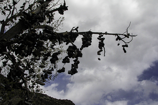 On the outside of the park we will see our third shoe tree. There is a chain of shoes so heavy that the lower branch is now on the ground, along with a pile of sneakers. We meet a couple that is on a trip celebrating their 10th anniversary (our 4th was in March) and they are trying a new route. They visited Tillamook with wine, cheese, salmon, and bread, and ate their lunch in a national forest – how romantic.