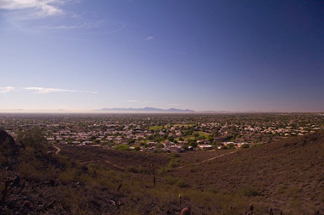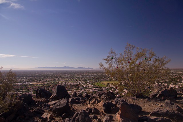 There are hikers, cyclists, and horses in nearby stables waiting to be ridden. I had planned on a different trail, but that’s not where I parked so I just followed the crowd up the hill. There are great sun-filled views and mountains in the distant desert. A sweater proves to be a bad idea as 60 degrees is hotter in the desert while hiking. Not a strenuous hike so it made for a great morning walk. I thought I might backtrack, but ended up taking a different trail back to the parking lot by accident. I saw a stink bug on a cacti and a bird on a bush. Perhaps the other animals travel for the turkey season too and are awaiting scraps in the neighborhood.