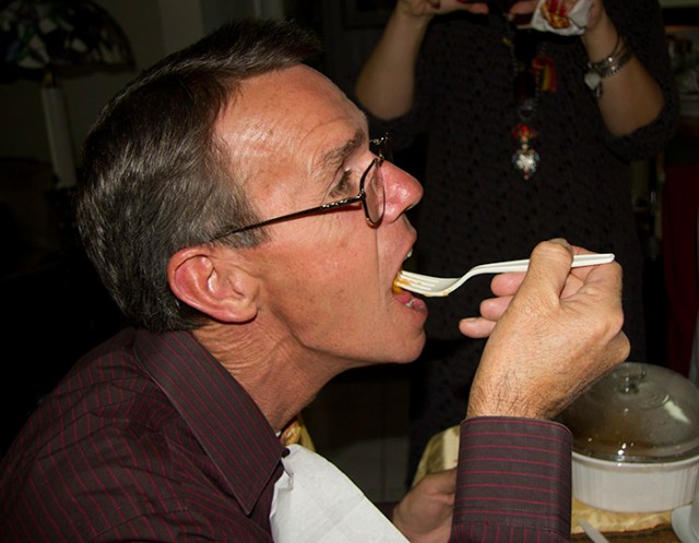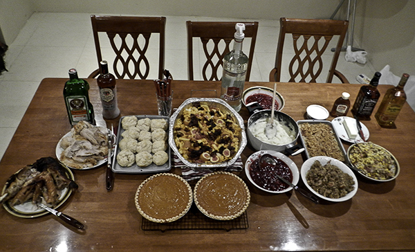 Peeled potatoes, watched some Macy’s Thanksgiving Day Parade, and then Amanda showed up with extra tables and food. I met her husband, not the most social creature, and her friend Melissa, who was nice and very helpful. I started eating appetizers at 1:00 pm. The family was told to arrive by 2:00 pm and most did. I got carried away meeting Dan’s side of the family – sweet and funny, but didn’t have to be told twice to grab a plate at 3:00. I filled it with green beans, potatoes, corn, yams, a roll, cranberry sauce, and a cranberry concoction (note: get yam recipe) with a glass of eggnog to wash it down.