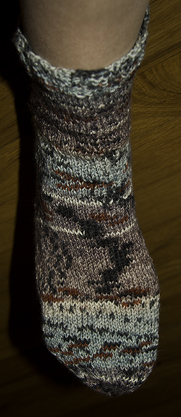 I was going to attach these pictures to this post, but this sock comes with a story too. I said I was going to knit this sock a size smaller and went down two sizes…and still too big. I can only look forward to what the next pattern will bring, but I will continue to decrease until I find the right fit for me. I decided against the purl stitch above the heel, as I accidentally did with the first sock. So instead I purled the heel – the whole thing before noticing!