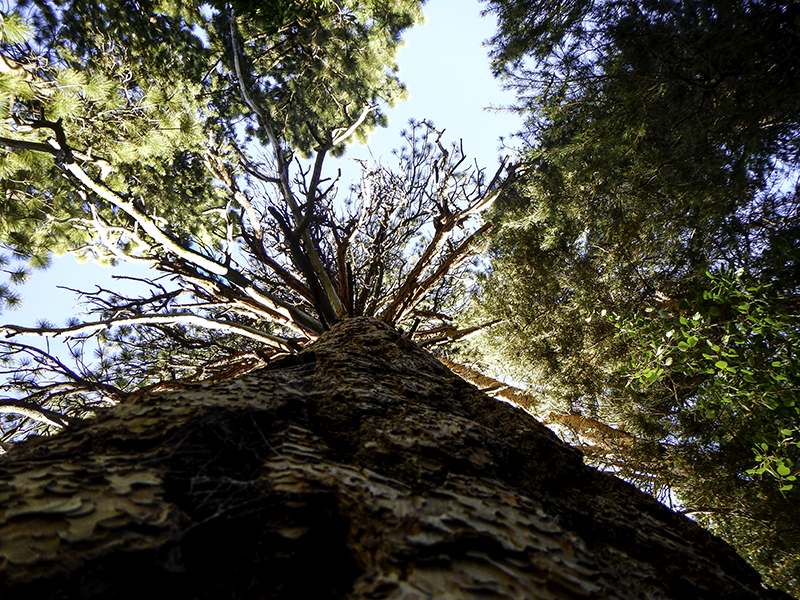 He’s at the base of the tree and the branches are at least 20 feet up, but could be more as pine trees can grow taller than 200 feet.