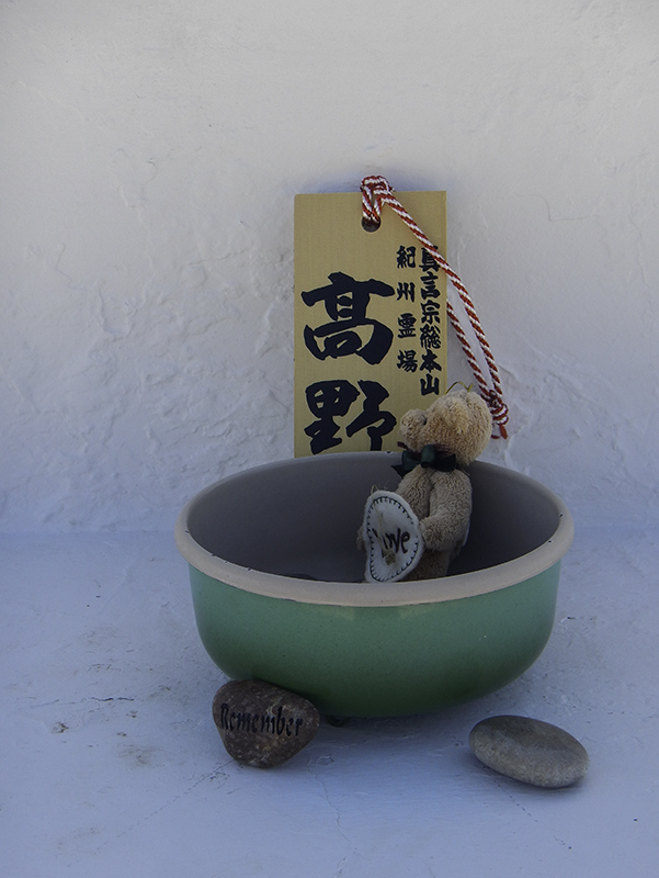 Lunch will be strawberries and cottage cheese for me and celery with cookie dough peanut butter for Caleb before stopping at Manzanar National Historic Site. It’s 96 degrees so we don’t spend as much time as we want in the museum and the gardens were damaged from a recent flood, but the origami is still on the cemetery monument and Caleb takes plenty of pictures while I walk and water the dogs. Caleb agrees on the beauty of the place, but also on the sad tragedy that is its history.