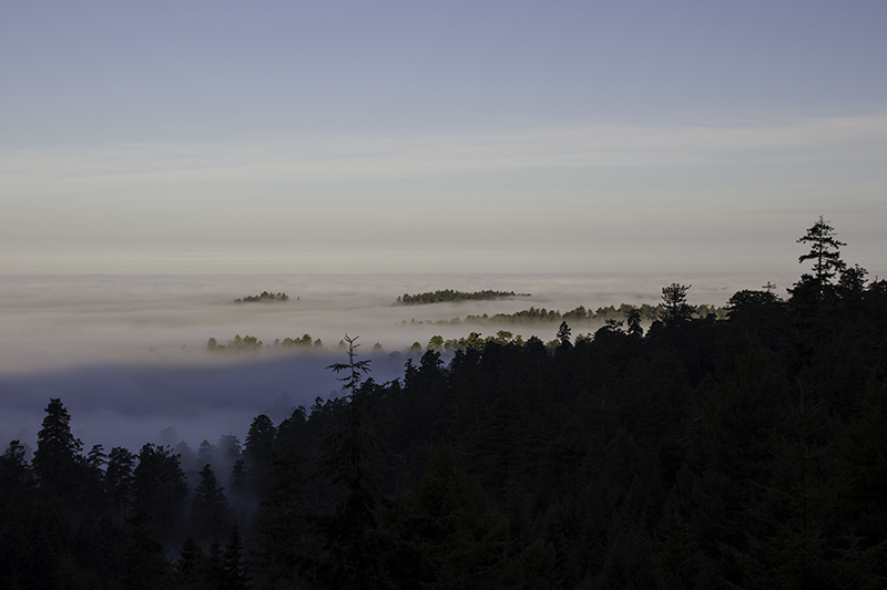 There is a sign near the lagoons north of Patrick Point that warn drivers, and pedestrians, of possible elk sightings and road crossings. One of the perks of being up before the sun is not only seeing the usual three elk that like to stand in a ditch or lay in a field, but to see a herd of them amongst the trees, grass, and sand of the lagoon leaves us feeling luckier than a cat out of a bag. We are able to spy on them for a bit, but Caleb just had to have a certain angle and crunched one leaf too many.