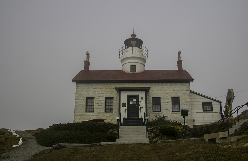We drive to the other end of town. The first time I was here it was too late and dark to attempt to see the lighthouse up close. The second time it was high tide with an amazing view. This time it was low tide in the fog and we were greeted with blackberries on the boardwalk down. I’m excited to be seeing it and sharing this experience with Caleb while the dogs wait in the car. Upon crossing the rocks we will see the sign that says, ‘No Dogs’.