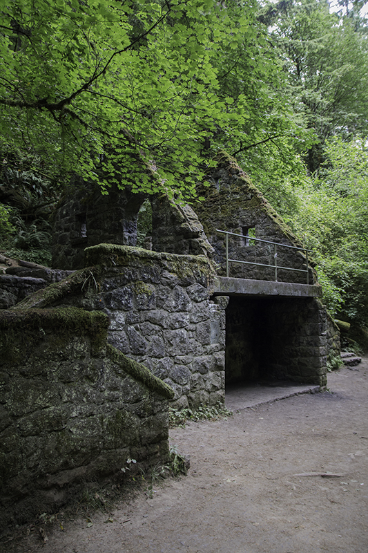 We drive back into town and then a little further north find ourselves in the parking lot of the Pittock Mansion. The place looks like it cost lots of money and I’m sure the rambunctious kids going on the next tour will be able to appreciate that, but I’m interested in something else. We inquire inside and the man behind the desk tells us we are in for a long walk. I don’t want to walk the 5.5 miles to Witch’s Castle via Wildwood Trail which would take an estimated two hours; we will find the closer parking area.