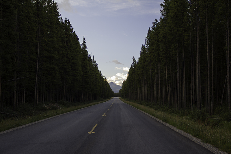 At Castle Mountain Junction we pull over to get a better picture of the bull elk eating with the cabin customers as his audience. I near the crowd as Caleb walks towards the road trying to keep our distance, but it seems our 13 yards were only half the space we were supposed to allow between us and it should be 100 yards with bears and wolves. I could see the predicament of remaining in your car – not too close, but not too fast to escape them and risk hitting one in the process. The elk crosses the road safely and is soon entering the thick of the woods.
