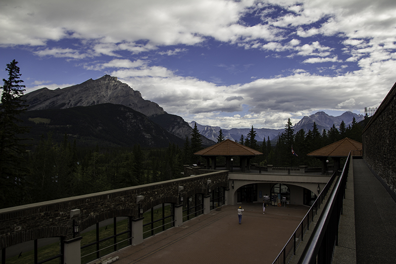 At the basin and it looks like it might have been a waterfall at one point. I want to touch the blue-green-clear water to feel how hot it is, but I’ve been warned to stay out of the home of the Banff Springs Snail. I think everyone else that was staring intently at the pool was also looking for a larger snail, but this one is the size of a popcorn kernel and easily blends in with the different growth and rocks at the bottom. Then it’s up the stairs to get another perspective of the springs, but my attention strays to the mountainous surroundings and imagining all the people in their heritage swimsuits prior to 1985.