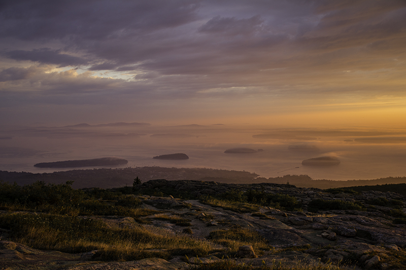 Now 6:30 am and the sun is moving up in the thick clouds. The view has changed dramatically in the last hour and a half and I enjoyed every second of it. We are now one of the few left gazing around longingly and reading the plaques about the location, one of which tells about the Frenchman Antoine Cadillac for who the mountain is named for his possession of it in the late 1600s. He would later go on to found Detroit in 1701 and inspire the name of the luxury car company that was founded 201 years later.