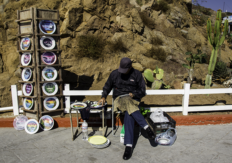 Half an hour into Mexico and we drive by a large Jesus that appears to be standing on a baseball cap sharing his word with the few extravagant homes that have an ocean view. On his head is a red light so that he is not beheaded by low-flying aircraft, but we can’t help but joke that it looks like a blinking bead that would be on a hat with helicopter blades. I want to stop and take detailed pictures of all this scenery, but just as it’s hard to find a place to pull over, it’s difficult to know what’s private property and whether these people want me taking pictures of them or their things – I drive on.