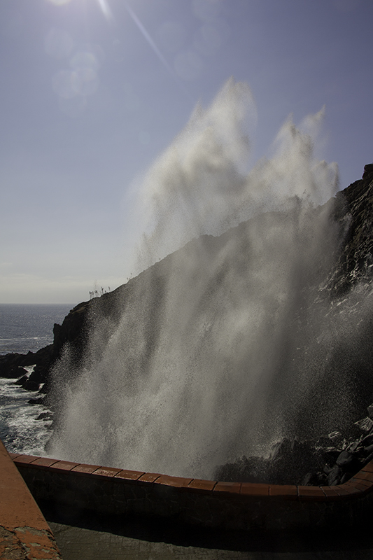 There is a lot of energy and excitement as people wait for the picture-perfect moment as the water sprays almost like a manmade fountain dancing to the music of the Earth. Climbing is prohibited on the rocks, but there are supposed to be kayak tours that allow visitors another view. There will be no water-sport activities for us today, so we make our way up the stairs for a different elevated look at the water, rocks, sky, and people – who are smoking, drinking, dancing, texting, and taking pictures.
