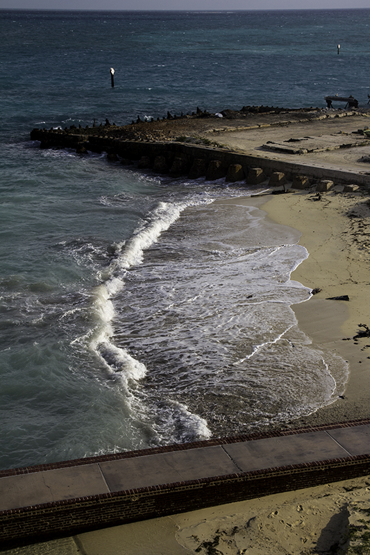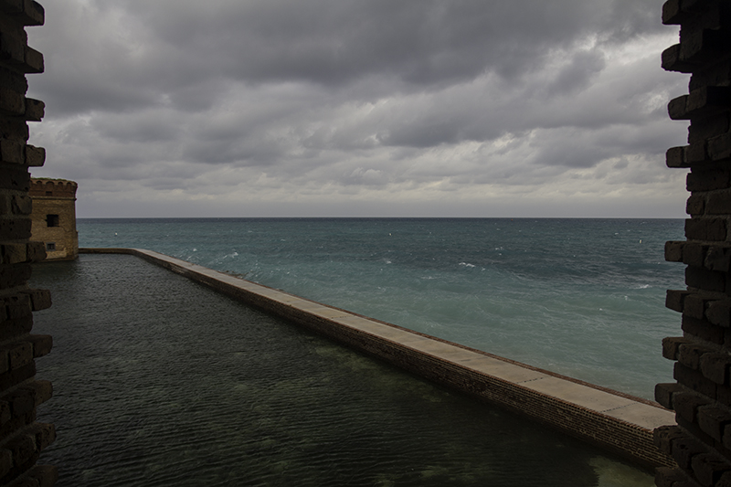 We make our way to the beach and then around the moat. Multiple times we are splashed by waves crashing over the brick wall. The water gets rougher as we go, but soon we are back on land. We go into the fort to explore the second and third levels and the wind is even stronger, but there’s a sense of peace as we walk quietly together on a 42 acre piece of land 70 miles out in the ocean. This place has survived for over 150 years and with the dedication of funds and construction can continually be repaired to last even longer.