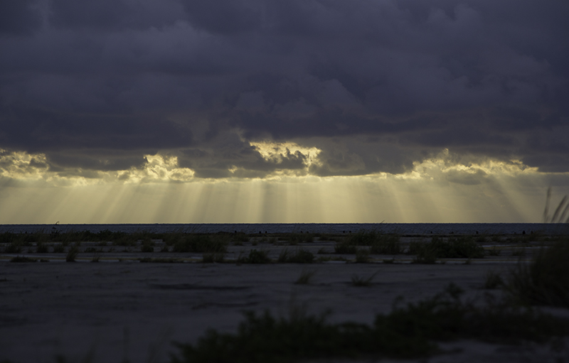 With the tent door open I can see ants patrolling the sand, our plenty of gallons of water on the picnic table, the wind blowing the coconut tree, and the sun lighting the clouds on the horizon – above that they are the color of rain – which would bring a change and offer a different snorkeling experience. The bladder calls. It’s time to get out and take some pictures and get in the water regardless of how tangled my hair is.