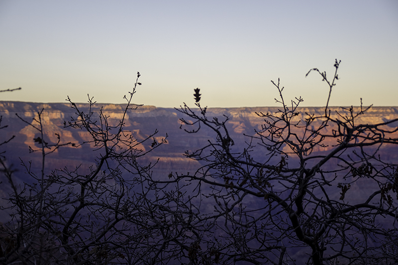 Caleb must be getting cold, tired, and hungry as he mentions more than once that we are heading away from the car. I can’t help but want to walk through the El Tovar Hotel – we are so close. We enter through the back and in front is a Hopi House art gallery decked out in traditional ladders and wreaths – instead of bound feathers to celebrate Soyal. It’s after hours so we aren’t able to gain an opinion about the interior, but I’m satisfied with our visit and we make our way back to the car to join the line of traffic leaving this park in the dark. We could’ve taken an old entrance road out and saved time, but we followed the crowd – all the way to Valle where the 180 and 64 split.