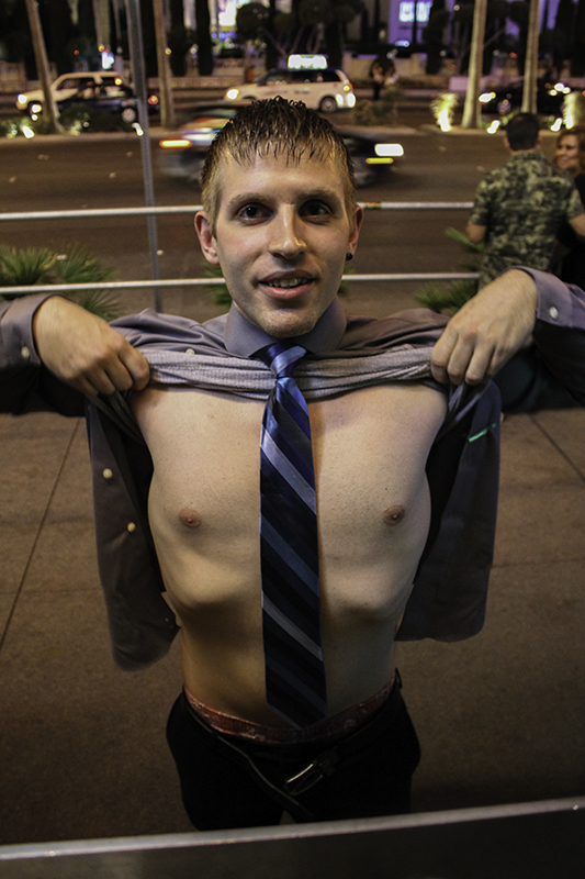 At 2:44 am we are in front of the Bellagio fountain looking at the blue reflection from The Cosmopolitan and at 3:00 am are stumbling by the escalators in the casino with the giant chandelier shining its purple brightness at us. The next stop would be the room. The right thing to do would’ve been to walk the dogs, but there’s no proof of that. What we would remember later is forgetting to visit the airport runway and watching a plane take off over the car or that at some point we got offered a joint that was taped to the bottom of someone’s foot – some things are missed opportunities and others are best left where they don’t concern me.