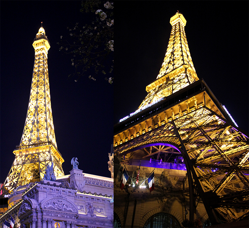 I saw a sign for Margaritaville and thought that would be a good place to start and it would lead us on another adventure. The one crosswalk was closed, so we would have to take the other three to get there. This gave us time to look at the yellow-lit Eiffel Tower, watch part of the Bellagio fountain show blocked by trees, and see the moving blue lights on The Cosmopolitan. And place our eyes on the World’s Brightest Light Beam, at 42.3 billion candela, at the Luxor, the second largest hotel in Vegas. But since 2008, to save money and energy, only half of the lights are lit – and it can still be seen for miles.