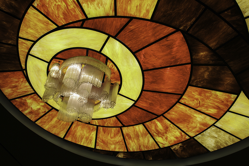 Gordon Ramsay’s Pub & Grill has a decorative wall of silver kegs with colored stripes that stand out from the other squares and angles of the ceiling and columns that find themselves in the Palace – mostly white, marble, and gold. There are skylights – real and fake, elaborate fountains filled with old change, plants and lights to attract our eyes, and a Vespa with a chance to win if you send in a picture with someone on it. We pass the gelato court with the flavor in its non-gelato form – chocolate covered strawberries or Oreos for cookies and cream.