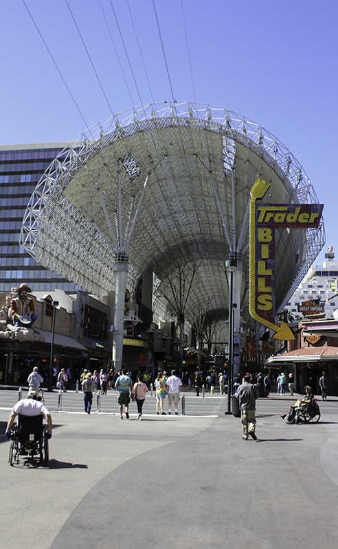 When the waiter came back he realized I was reading it and mentioned that’s the reason they do the math for the customer and have the 15-18-20% tip amounts suggested on the bottom of the check. These amounts were pre-tax and I’m used to adding in tax, so I changed my amount, tipped him well, and we were on our way to the airport. I dropped Deanna off at noon – her flight in an hour or two – and then parked along the road on the way back to The Strip and the highway and pulled out my long list of possible to-do’s while in Vegas. It seemed overwhelming, and then I decided to visit the old strip – the Fremont Street Experience before driving home.