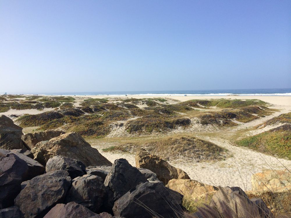 Our first is Coronado where we walk with shoes on in the sand to the surf. Caroline is quick to take off her Sou Sou split-toe shoes but not to leave them lying around like she would her Birkenstocks knock-offs. She rolls up her pants and heads in. I will touch the water and agree that it’s still cold. We walk to a lifeguard station to sit on the concrete wall in the sun and eat our breakfast – only after Caroline chases off a spider the size of her tiny fingertip while Caleb stands back giving the arachnid plenty of space.