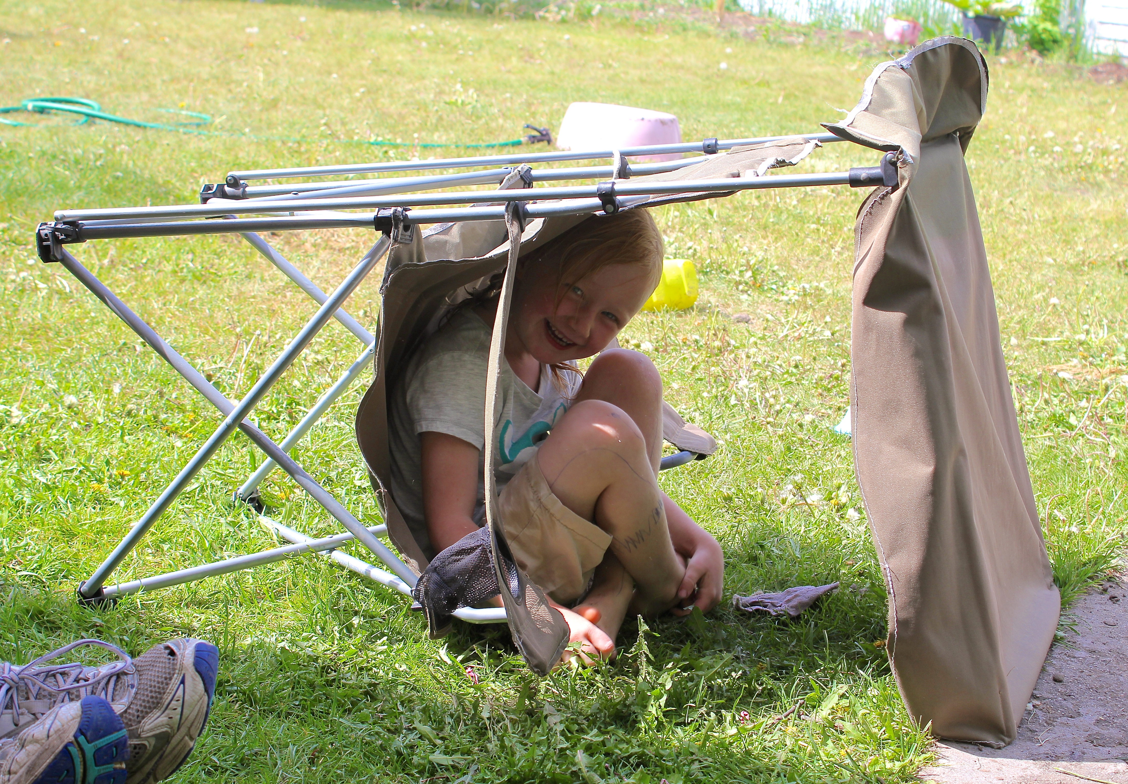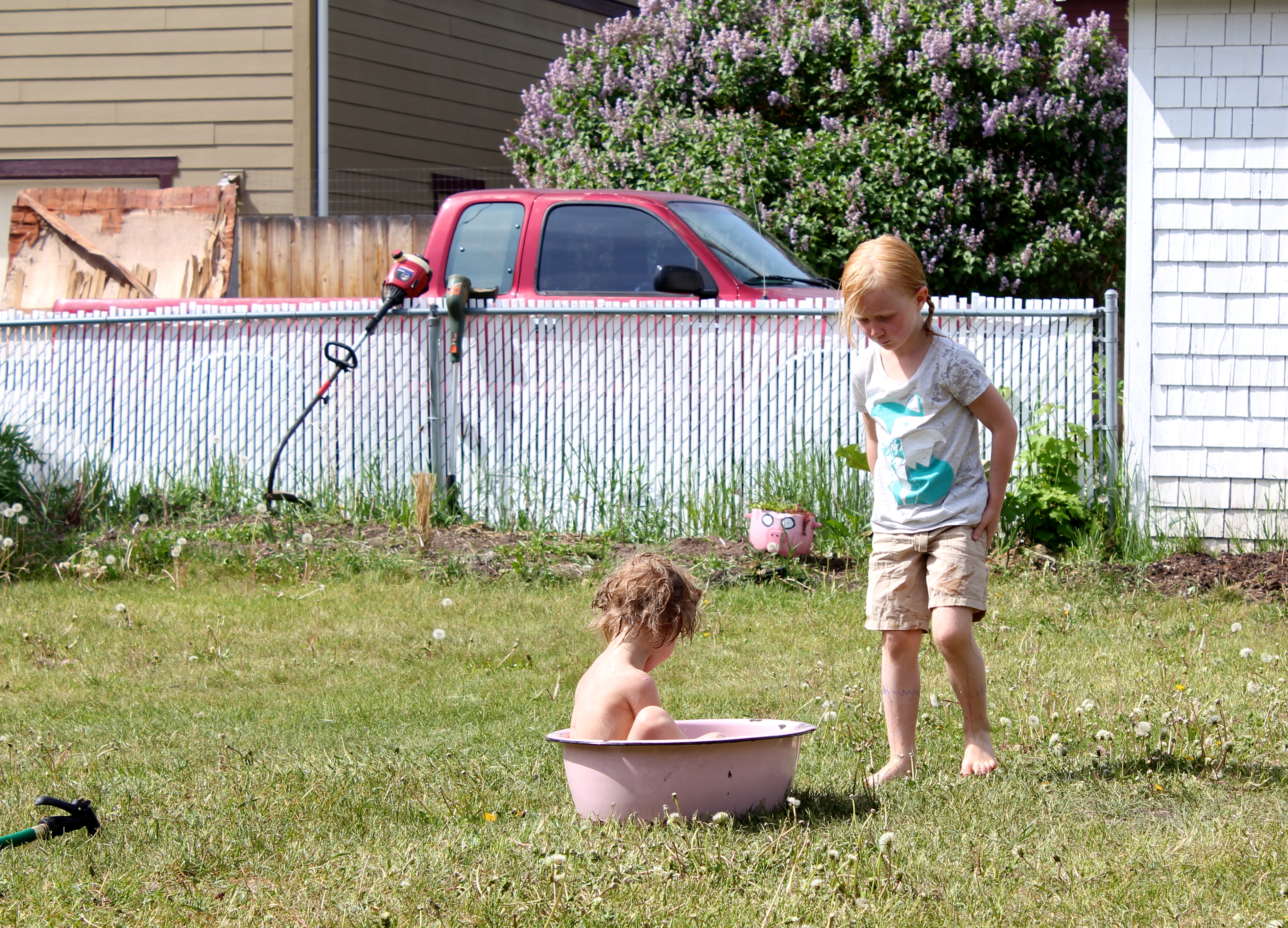 Then it was south to Missoula, down curvy roads and under animal overpasses, where we would get to his dad’s house at 2. We talked for a bit and then Caleb told his sister we made it to town and we all went to her house to watch the girls make themselves into mud goblins. They got hosed off in the yard before getting showers. Sage, one of Sammi’s friends from school shows up and they are playing in the backyard when I overhear Sage telling Sammi (who is acting like Sparky), “Sparky sit or I’ll give you a treat.”