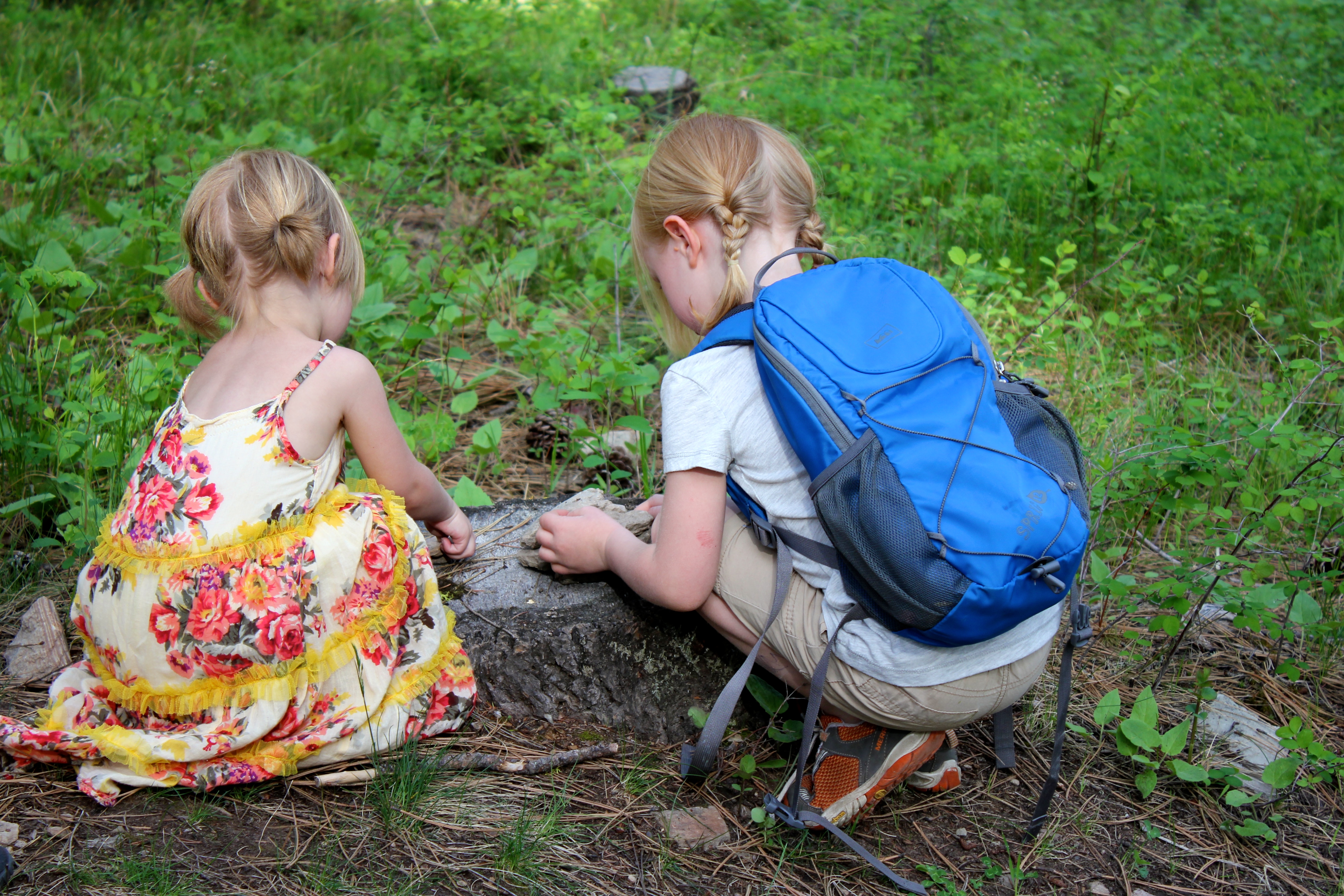 I went in the house snickering to myself while I told the others what I had heard. Sammi’s parents decided play time was over and it was time for Sage to go home (she just showed up at the door) so that we could get out of the house. We went hiking at Crazy Canyon – a nice forest walk close to the house – and no reference to the hikers. We smell the sweet sap of the ponderosa pine and the girls build cairns. Grandpa sits down to rest while we go to the trail intersection and turn around. We pick him up and some flowers from the trail on the way back.
