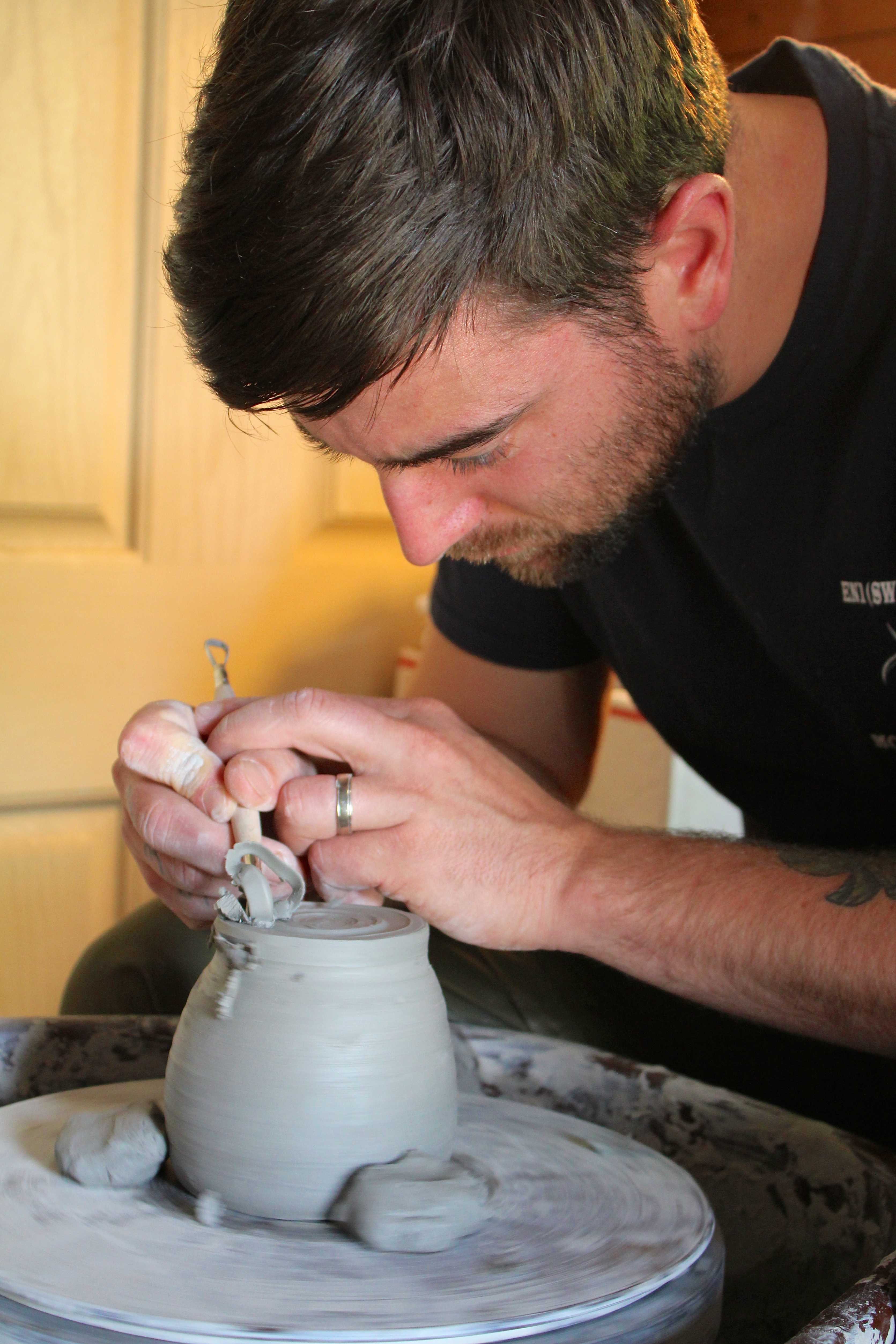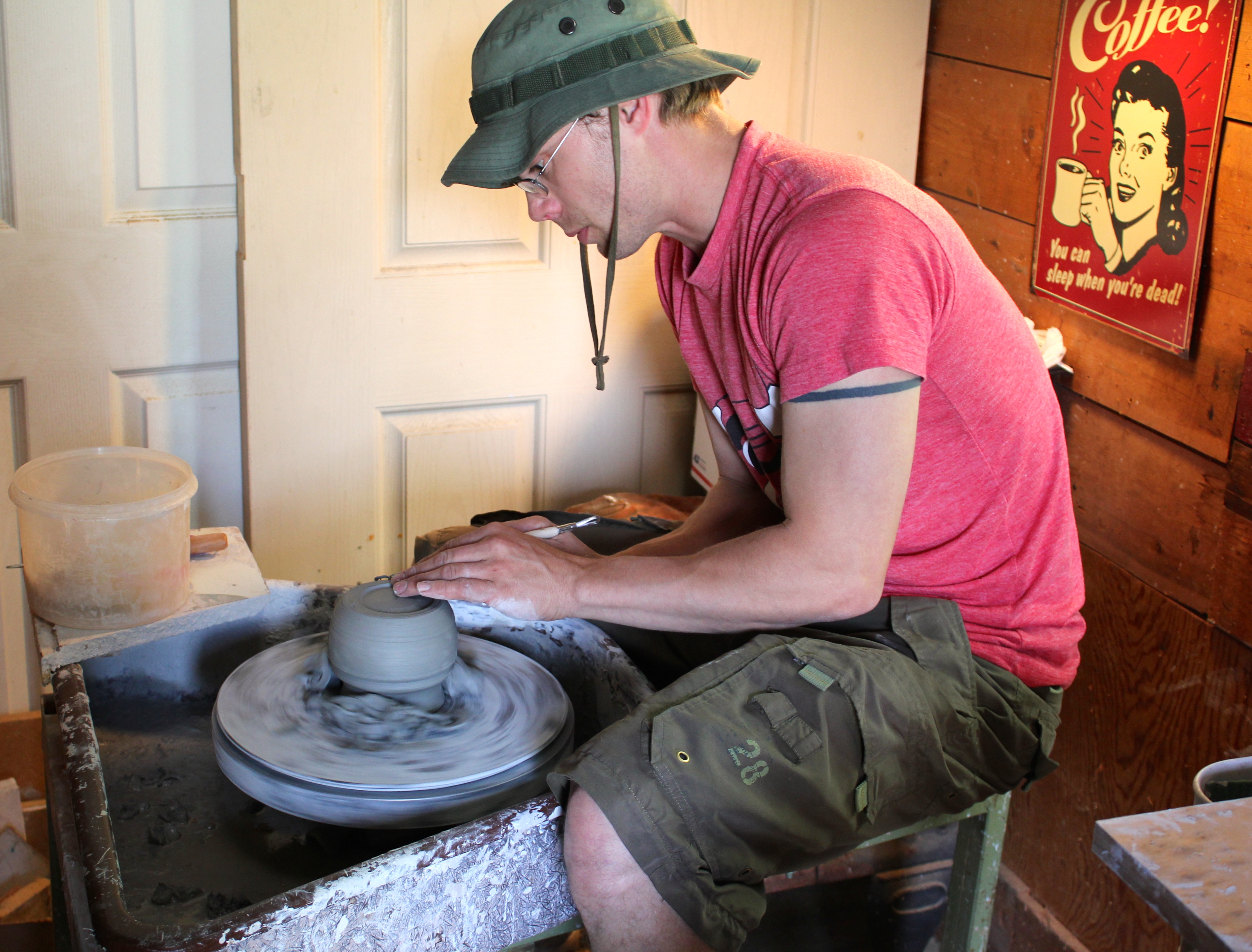 Lyra enjoyed the chicken, but didn’t want the peas from the pilaf with it – good thing her and Jake were sharing. Caleb went into the shop to finish his cup – put handle on, sign the bottom – and I left the men alone while I walked with Lyra to pick up Sammi from school. We arrived 20 minutes early and went to the playground. We went to the small playscape and each got a slide, then I sat in a spinning chair and once I got myself going I couldn’t stop and told Lyra to get back because I would have to jump out.
