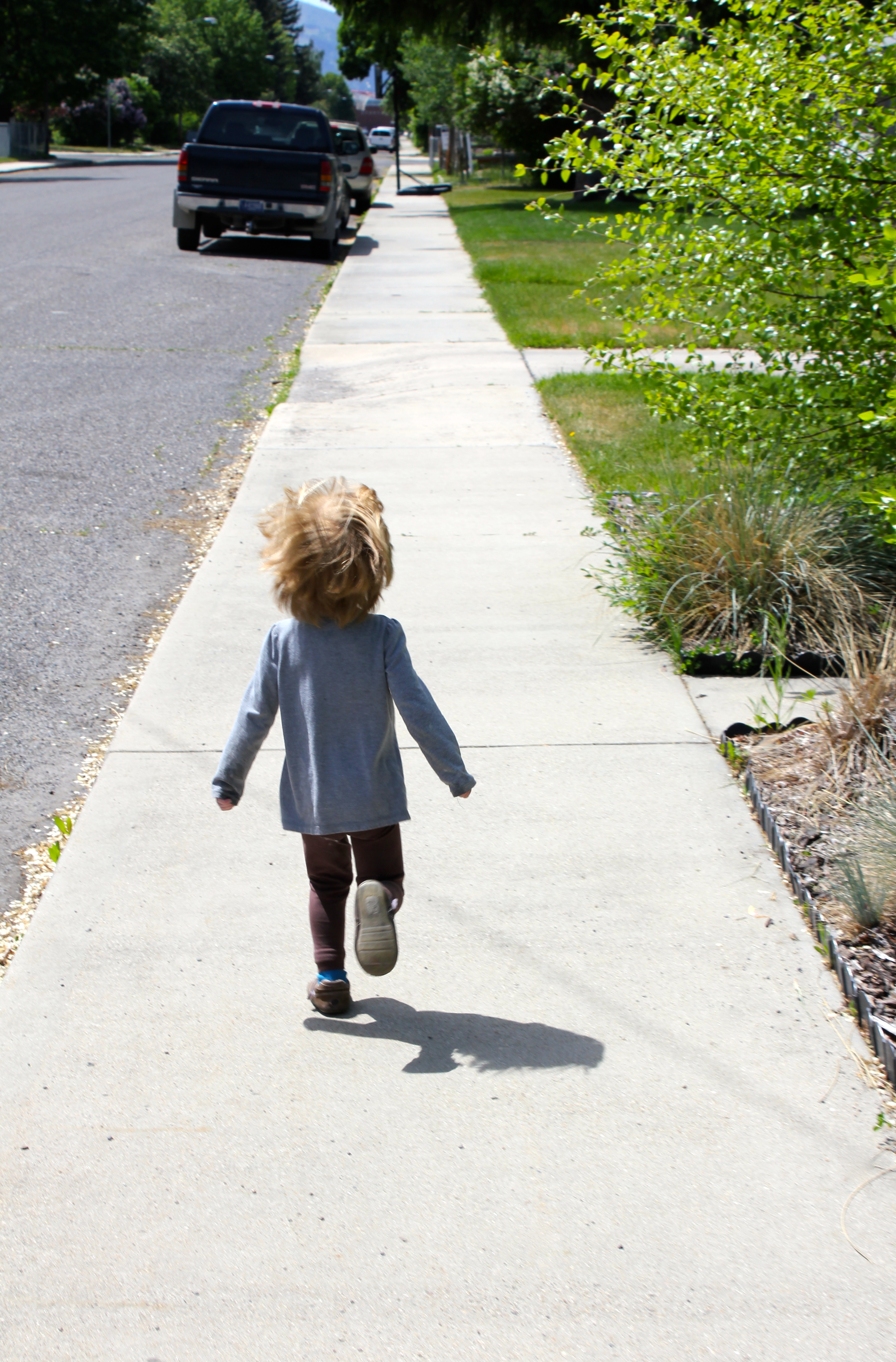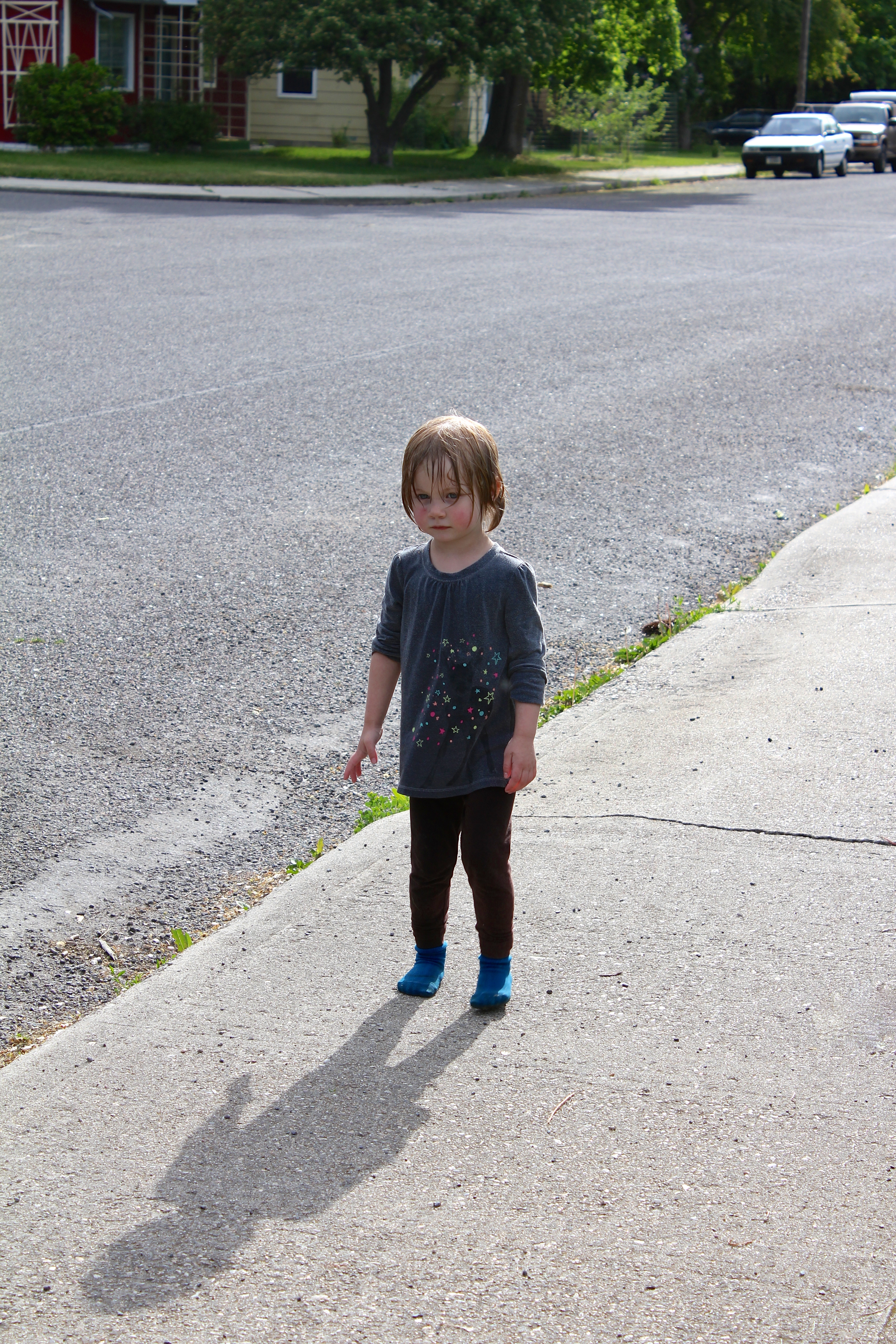 Jake played with the girls outside while the rest of us sat around the table. They had fun watering the plants and gardens, playing on the neighbor’s longboard, and being owls keeping their feathers wet in the lawn sprinkler. I helped dry them off when they started getting cold. Jake’s mom stopped by the back door and was gone without a hello, then Jake left to spend a night out with Jessi. We got the girls into their jammies even though it was only 5pm – they weren’t going anywhere for the rest of the evening.