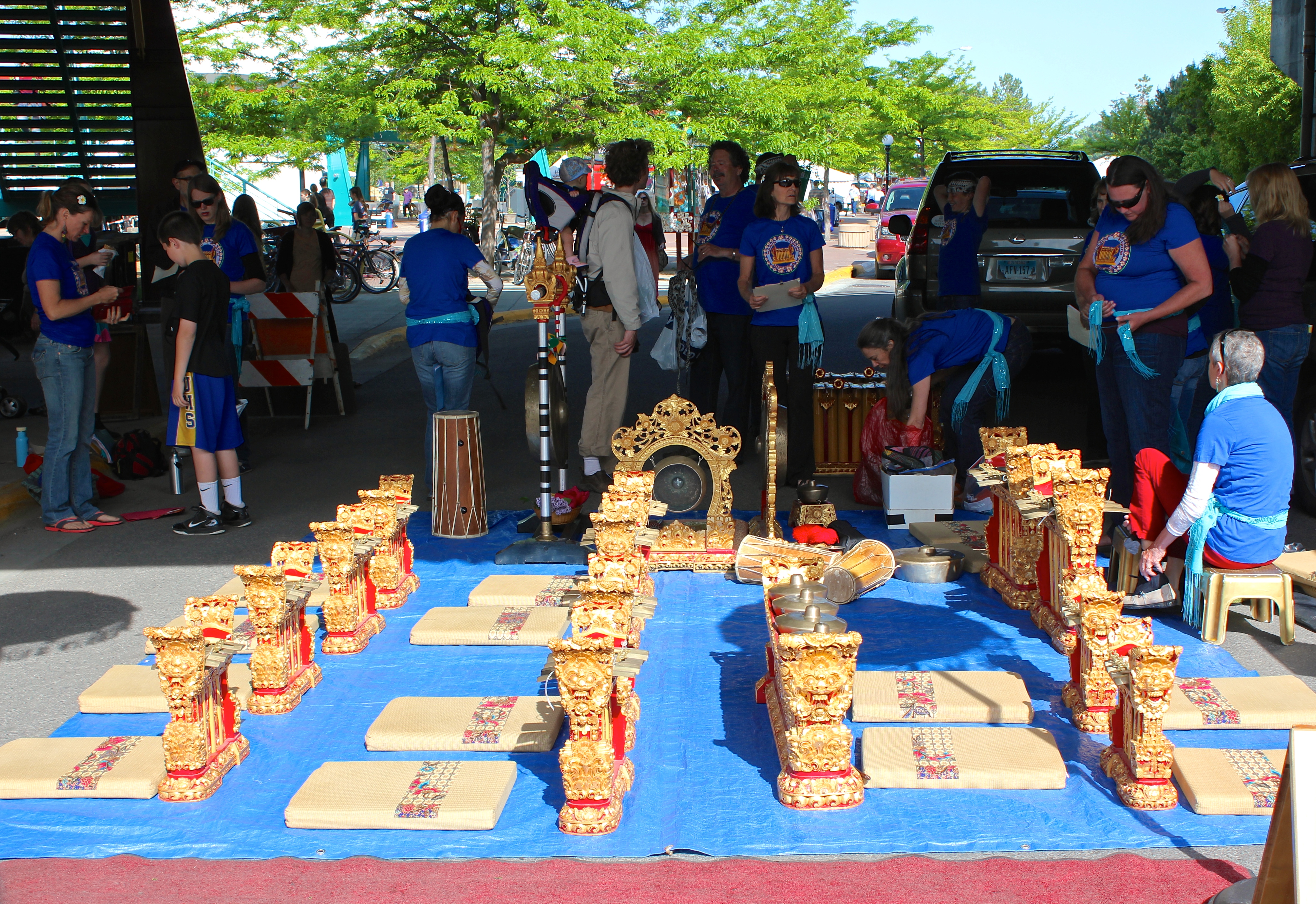 We walked the two blocks to the bus stop and the farmer’s market bus was not running today so we caught a ride downtown on the city bus for free. Robert had his bag ready for plants and veggies and wondered why Jake stopped to teach the girls about Gamelan Manik Harum – a local chapter that plays Balinese angklung music using bronze metallophone instruments to form a percussion orchestra. I only wish we could’ve heard them play. Maybe next time, or if I ever make it to Bali!