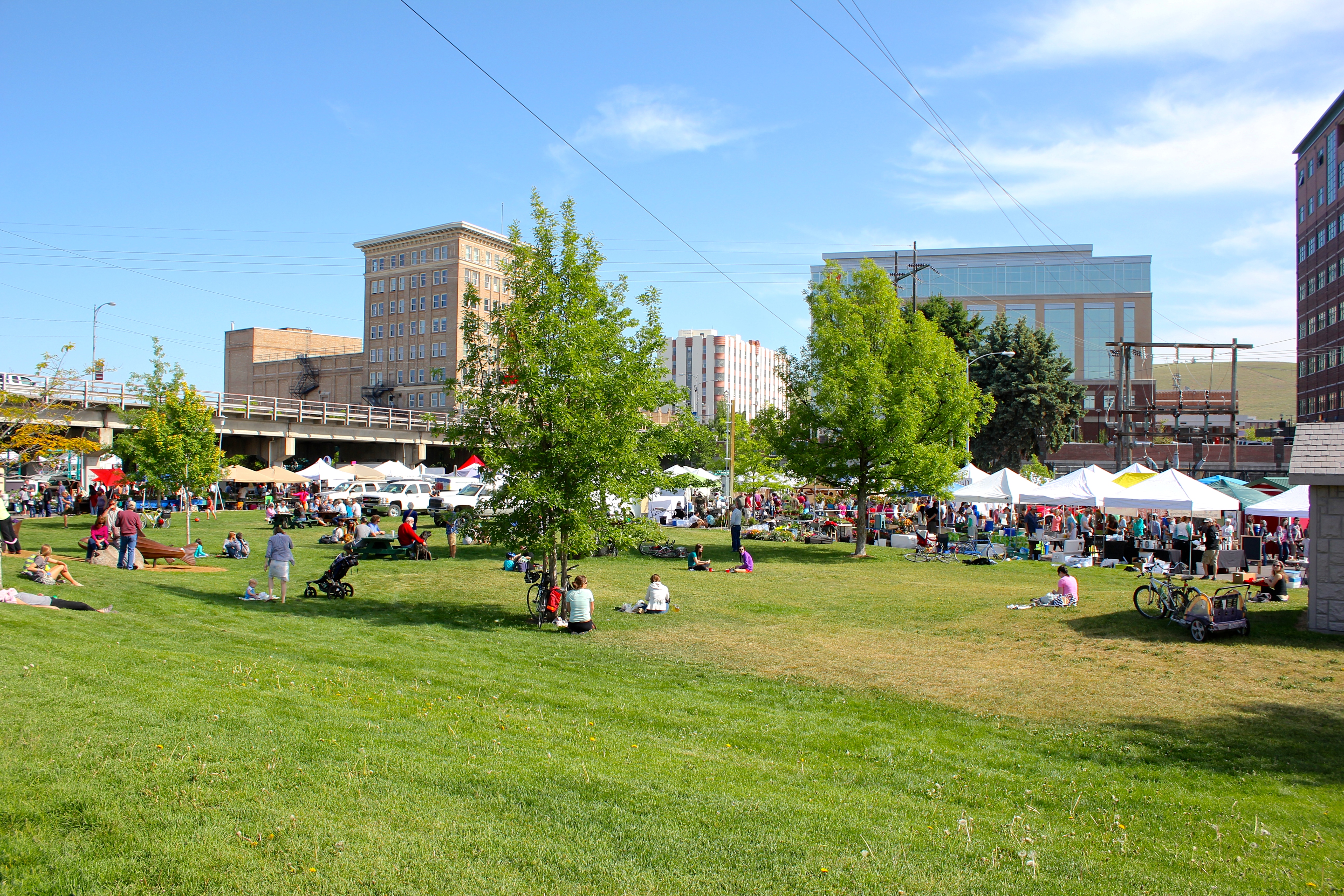 We continued to walk past oven baked pizzas, jams and vinegars, face painting, and lilac wine, but it was the pastries that caught the girls attention. They got a pink one to share and then Jake took them to look for a more healthful lunch option. For $20, Robert was able to buy the pastry, rhubarb for tonight’s pie, and some veggies to eat and grow. I found a small bowl of free candy and grabbed a blue raspberry dum-dum – my favorite as a kid when I would go to the bank with Mom.