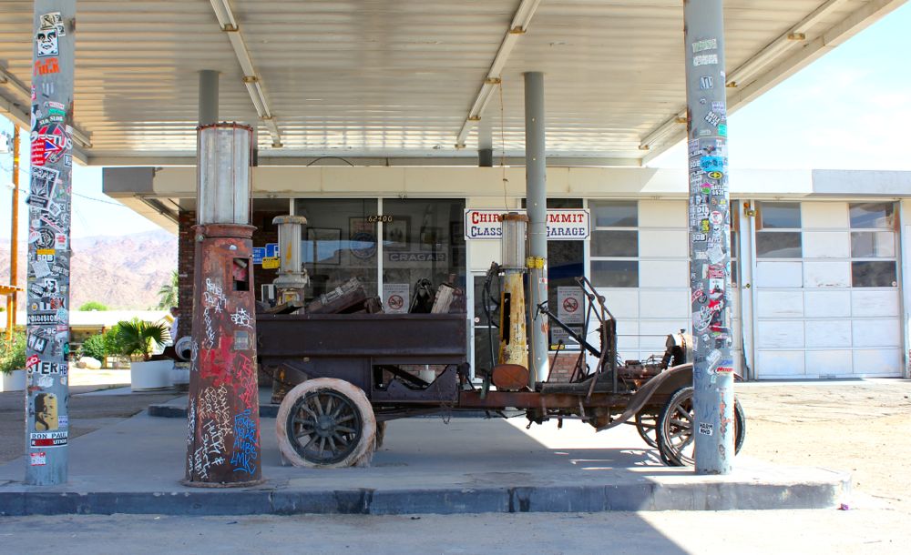 We reach the California border at 8:30 – on a route we’ve never been on together, and roll through Chiriaco Summit just long enough to get pictures of a corroded car at a rusted gas pump, the General Patton Memorial Museum, and the military tanks surrounded by other unused vehicles in a barb-wire compound. I would’ve loved to spend more time, but emotions are high and my anxiety level peaked. I wanted the doggy drop off to run smoothly before I enjoyed the rest of my day. We passed a field of wind turbines at 10:24.