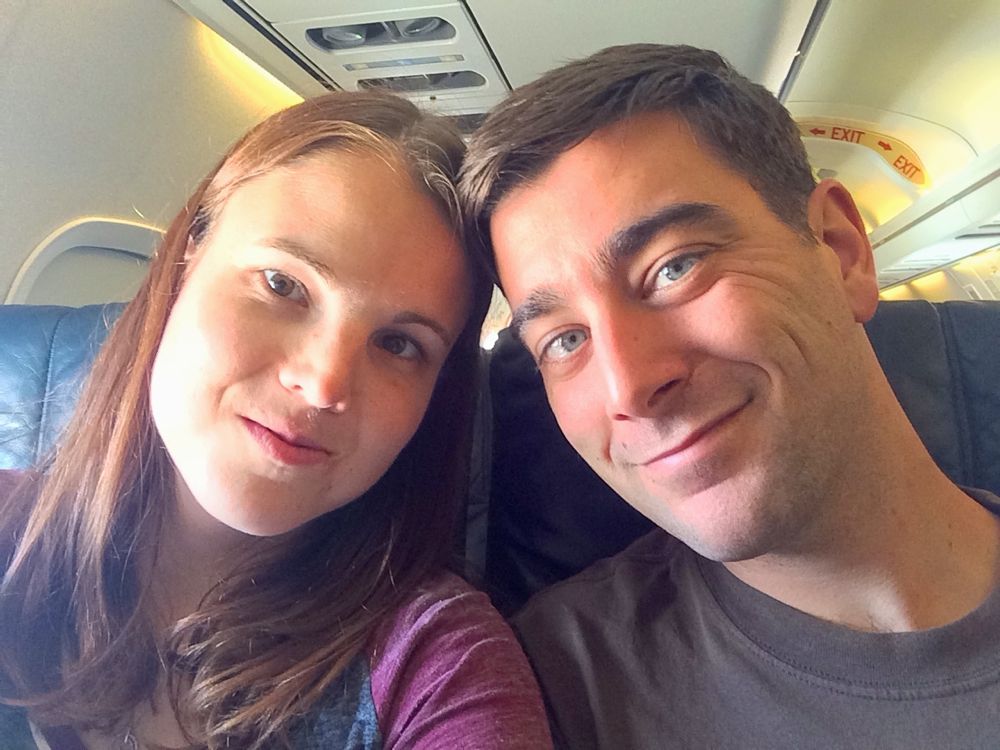 I read for a while longer after our 30 minute nap and everyone is jolted awake with the turbulent landing. We land at 4:40pm Eastern time, to the Norfolk Airport, grab our bags from the last carousel, and then sit outside and wait for Kris, Caleb’s brother, to arrive. I call Dan, our neighbor taking care of the car, to see how things are going. He’s at the car place and soon calls me back to get Caleb’s birthday and social. It starts to sprinkle some, Kris is stuck in traffic, and Dan calls back because the guy there needs a printable version of the back of our title – which is blank, to prove that we didn’t sell it to someone else – after we just paid it off and haven’t received the clear title yet with the lien removed.