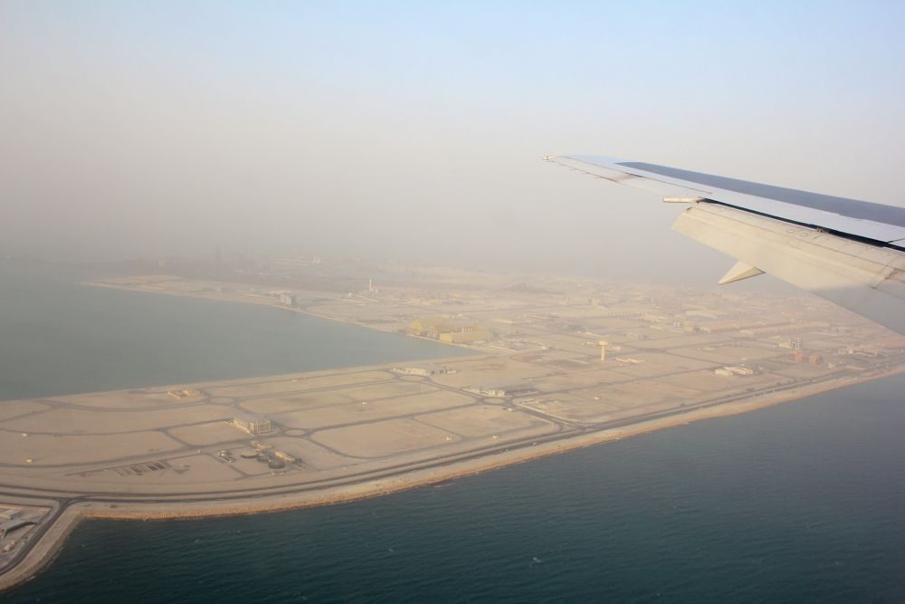 What I thought was ocean was the vast sand desert of Saudi Arabia. It does help explain the erratic layout of roads and lights. I get to see a lot of the northern part of the island on our descent – a few buildings (enough to count on my hands), one visible road, and more tan than I’ve ever seen in my life. Then come the shades of tan houses, the fishing boats on the beach, and the few cars on the road at 5:40am. Then I see a patch of grass before we land and know that not all hope is lost.