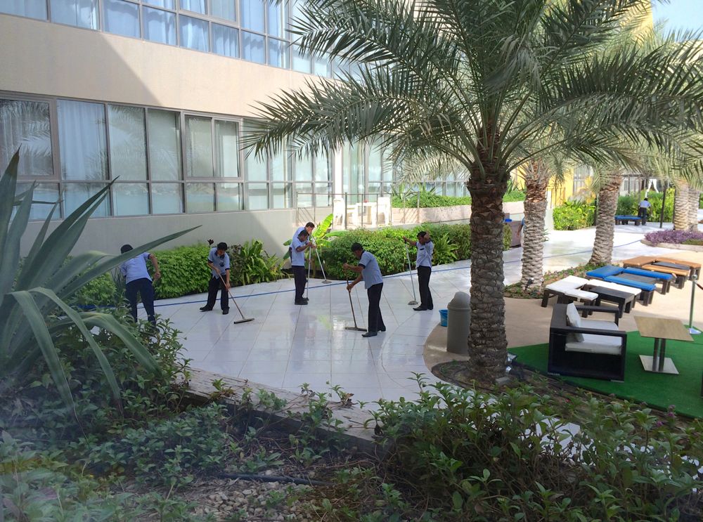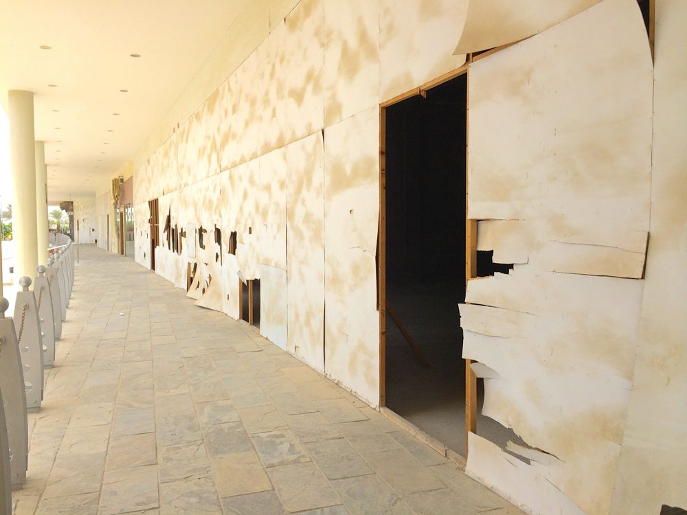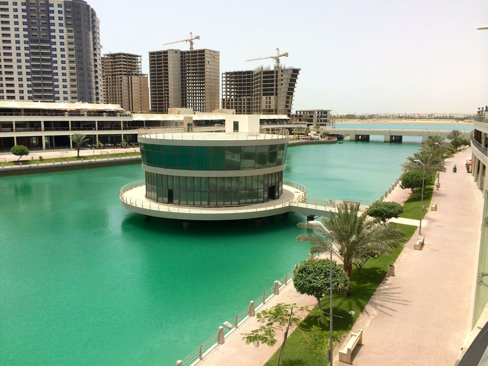 The mall is three stories – floors G, 1, 2 – with the second floor mostly construction, the first floor mostly restaurants, and the ground floor offering food, furniture, and spa services. There is a building on each side of the water and a round building built over the water, but the janitor can’t tell us what it is, or we don’t know how to ask, but we do point. I find a ladies prayer room and take a peek inside. There is a place for your shoes, a wash area for hands, feet, and face, and then a carpeted room with a bookshelf in the back. We pass a lot of American version restaurants and though I thought I wouldn’t eat there I want to taste the difference. We make our way from one side to the other, find the elevator, and I finish my water. It’s time to find air-conditioning and more water.