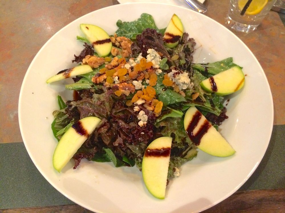 We order our drinks – me a lemonade that I fill half with my water – and then order our food. I’m not the only one to get the apple walnut salad. After some time the waitress comes out to tell us that they are out of mac-n-cheese – the whole reason we came because it’s Angel’s favorite dish. She seems to be ok with ordering not one, but two, burgers (sliders) and while we wait for the food Angel opens her presents. She got plenty of Play-Doh, a Hello Kitty swimsuit, a My Little Pony, three cute dresses, and some cash among other things. She liked the stickers the best.