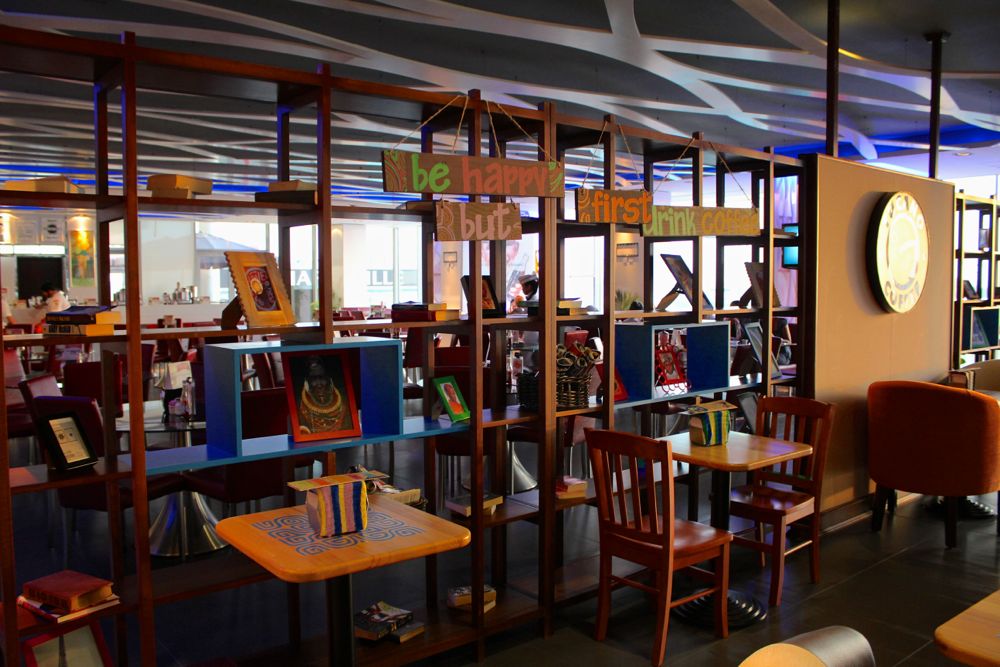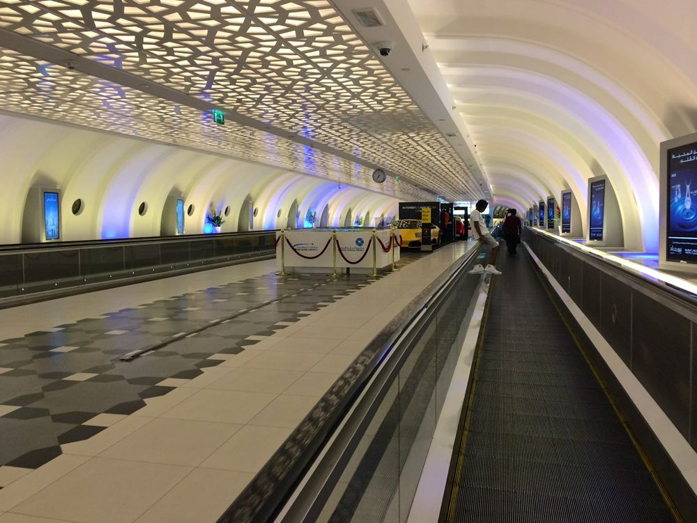 I showed my passport to the agent and asked if I could take a picture of the cute gate, complete with Abu Dhabi police logo, that I would go through once he pushed a button. He said yes. I put my bag through the x-ray and then made my way towards Gate 11 past the bright yellow Lamborghini in the middle of the terminal. Near the entrance to the passage that leads to the gate is a shopping center selling Swarovski, Johnnie Walker Blue Label, Cheetos, camel figurines, international plug adapters, and a shelf of books by author John Green. There are more shops downstairs, but I’m distracted by the seven magazines I’ve picked up that are available for free.