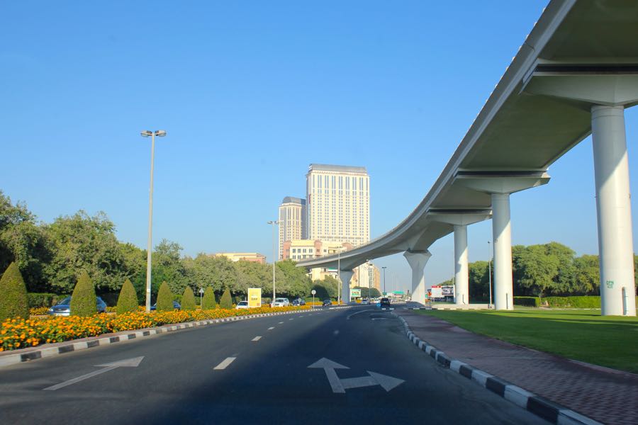 I thought Abu Dhabi had greenery, especially on the drive from the airport to the corniche, which would otherwise be just natural desert, but Dubai puts lots of effort (and water) into maintaining a lush appearance throughout the city. The morning drive out of Sharjah, and at night going into, can be a bit much for a beginner, but I’ve driven in Miami, Phoenix, New Jersey, and DC, so I have a bit of practice at the magical lane dance or merging and reappearing constantly.