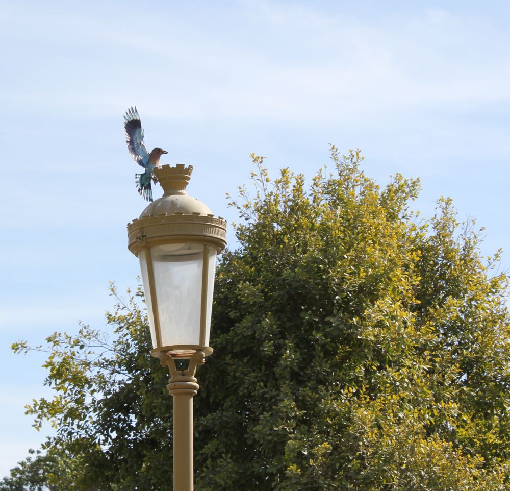 We walked by the teacups (Caleb’s favorite carnival ride) among others that had cats hidden in them, and a replica-looking Ladies Mosque, and a large set of swings – they’ve got the right idea in the Middle East – not skimping on things wanted or needed. We walked between wall and trees on one side and grass on the other looking at flower bushes and trying to capture a picture of the elusive Indian roller – so fast, so beautiful, and perched so high.
