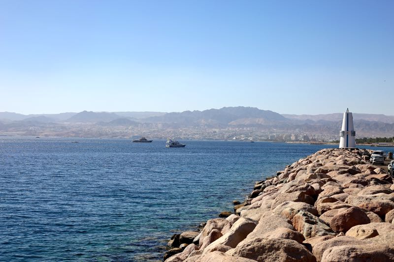 We enter the Aqaba Special Economic Zone at 3:15 pm and get waved through a tax declarations and emissions checkpoint two minutes later as the mountains come up around us. They’d been shadows in the distance and it’s nice to see the lines and colors change up close. We park near the marina next to the Tunisian Hammamet Gardens. As we’re walking in we’re joined by Mahmoud, just walking around, who wants to take beautiful me fishing and swimming tomorrow and perhaps to dinner tonight. I might’ve been ok with him, but he tried to tell us that we couldn’t look at the Red Sea from the direction we were headed, so we parted ways.