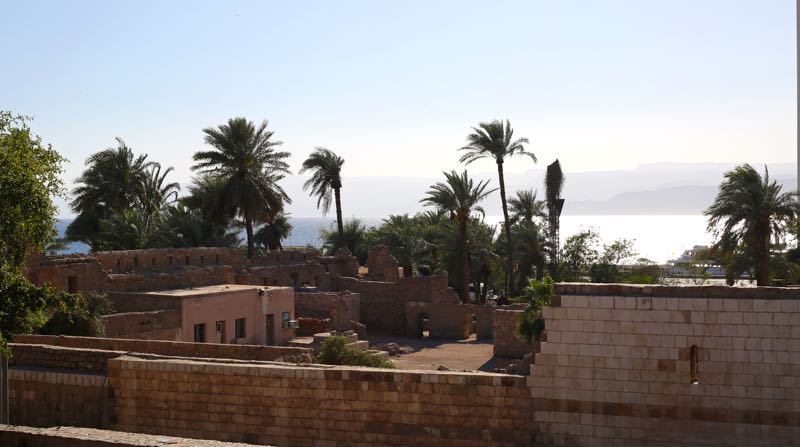 We drive up the coast in search of Wi-Fi for Julie. We stopped at the Movenpick Hotel and used the large map on their wall to accomplish nothing, but got offered plenty of taxi rides while saying no and pointing to our car. I walk into Early Islāmic Ayla, with free entrance, and have a look around while Julie sits in the car. These ruins are evidence of the port that once flourished here during the Umayyad, Abbasid, and Fatimid periods, 661 – 1258 A.D.