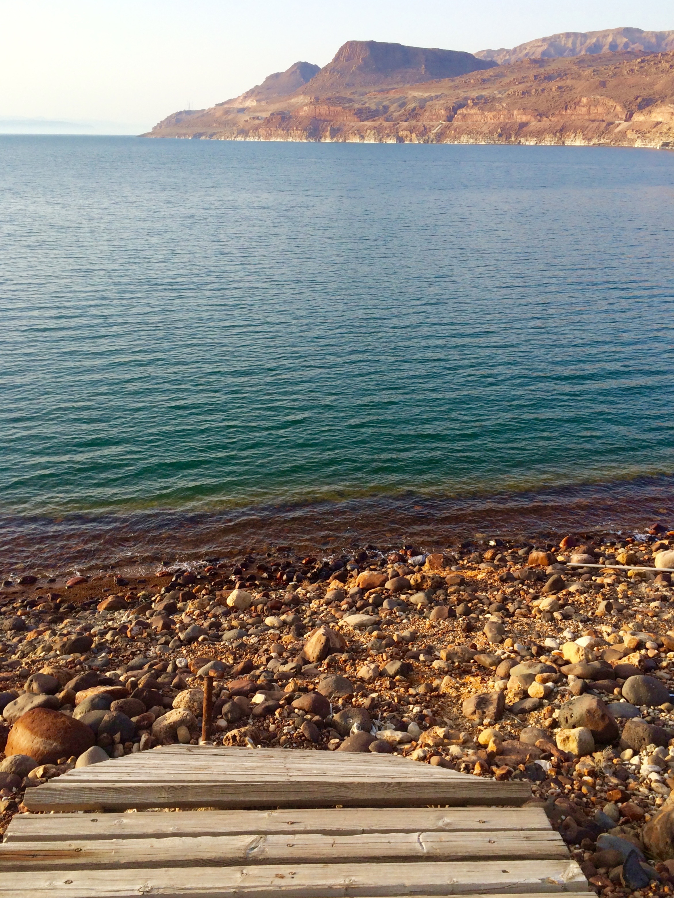 We paid 1 JD for a long shawarma with fries, tomatoes, and cucumbers, eaten off a Sports Authority tray. The staff showed us the large in-ground pots outside where they cook 100 chickens at once and told us that a shawarma stick can hold 200 chickens. We thanked them and got back on the road – and watched the hills go from green to brown to lake – as if the grass had melted into a pool.