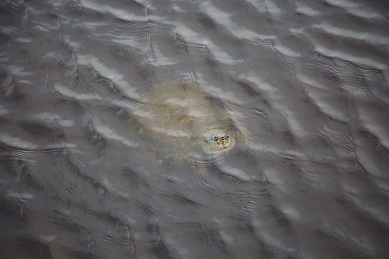 Quite a few people seemed to have the same idea as us — camp at Cape Hatteras National Seashore and pack up while the sky is shades of purple. We drive to the lighthouse and explore some of the nearby trails, where we encounter a male red-winged blackbird, a young white-tailed buck, a stinkpot turtle (known for their musky defense), and a couple of common snapping turtles. There’s a plaque near the beach for the Pea Island Lifesavers, an all-Black crew led by the first Black commanding officer in the service.