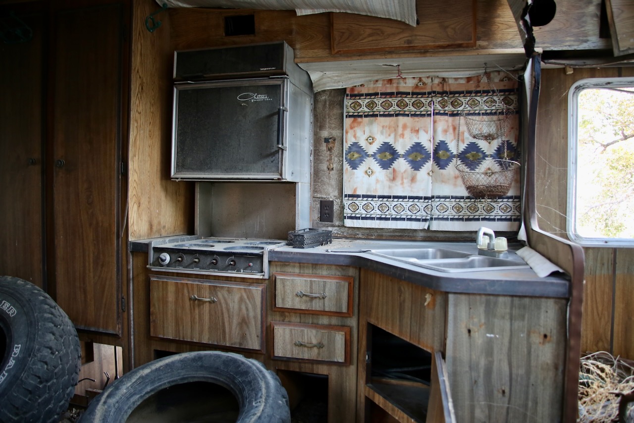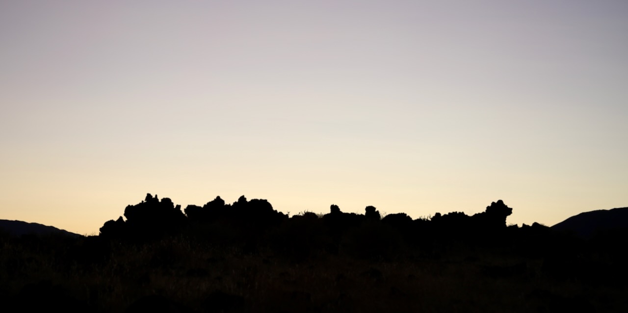 I skipped a morning walk at Fossil Falls so I could check out abandoned property in 59° F instead. I hadn’t planned it that way, but the contrast of a decrepit building and contemporary vehicles drew my attention to chipped paint, broken glass, and rusted metal. A tarp and a trash bag would go a long way in repairing this place, and if I had nowhere else to be, I could claim squatter’s rights. I stop along the 190 E and close my eyes in an attempt to take in the silence more efficiently. There is no sound for miles, and this place definitely lets the mind unwind and reset.